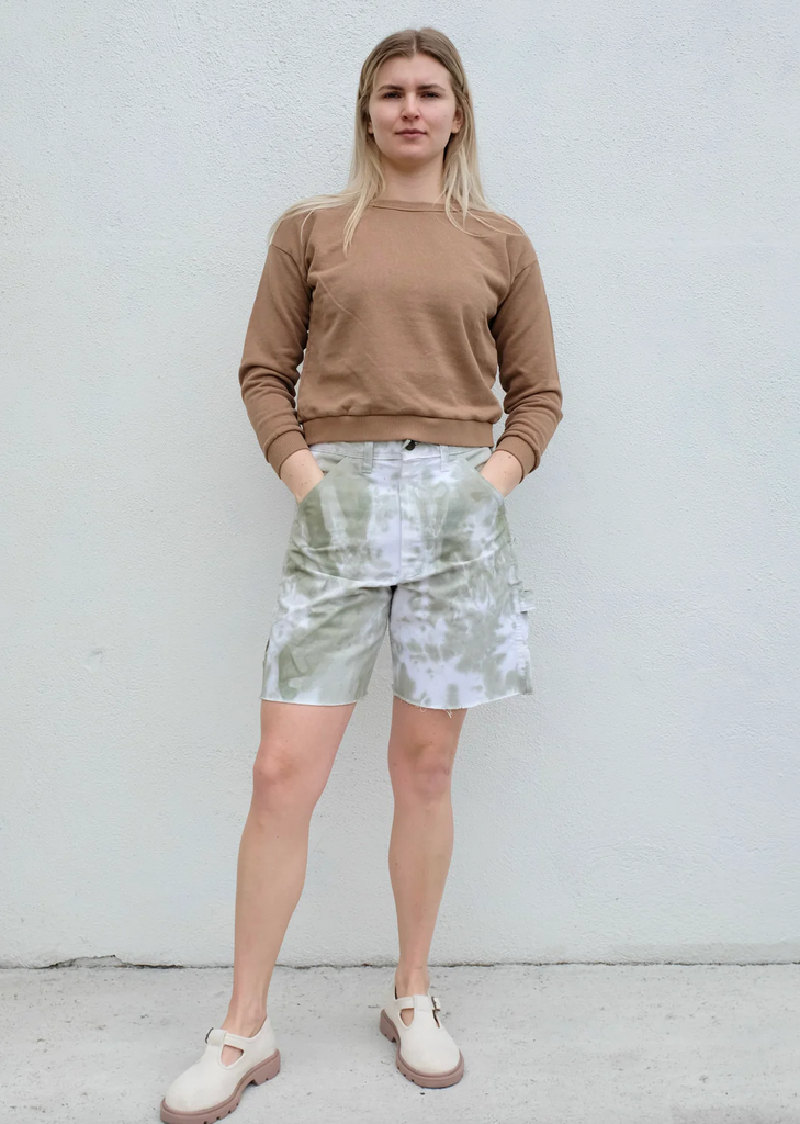 Deadstock vintage Stan Ray cut off work pants hand dyed with low impact dyes. Durable cotton twill in a vintage fit; high waisted, slim throughout the hips and straight in the leg with carpenter pockets. Complete with a zip fly + button waist closure. Those wanting a more slouchy fit should size up. All sizes are actual waist measurements.