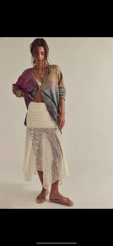 Updated classic this super soft long sleeve cashmere and wool blend cardigan features a button closure at front, rib knit collar, cuffs, and hem. Dropped shoulders. Oversized fit.