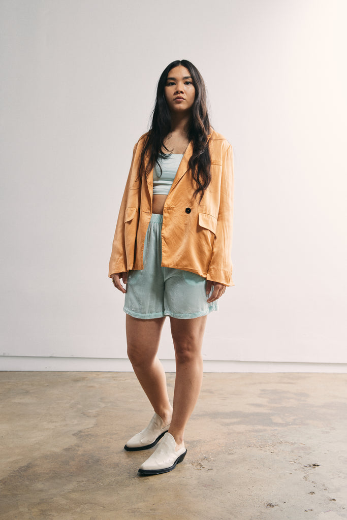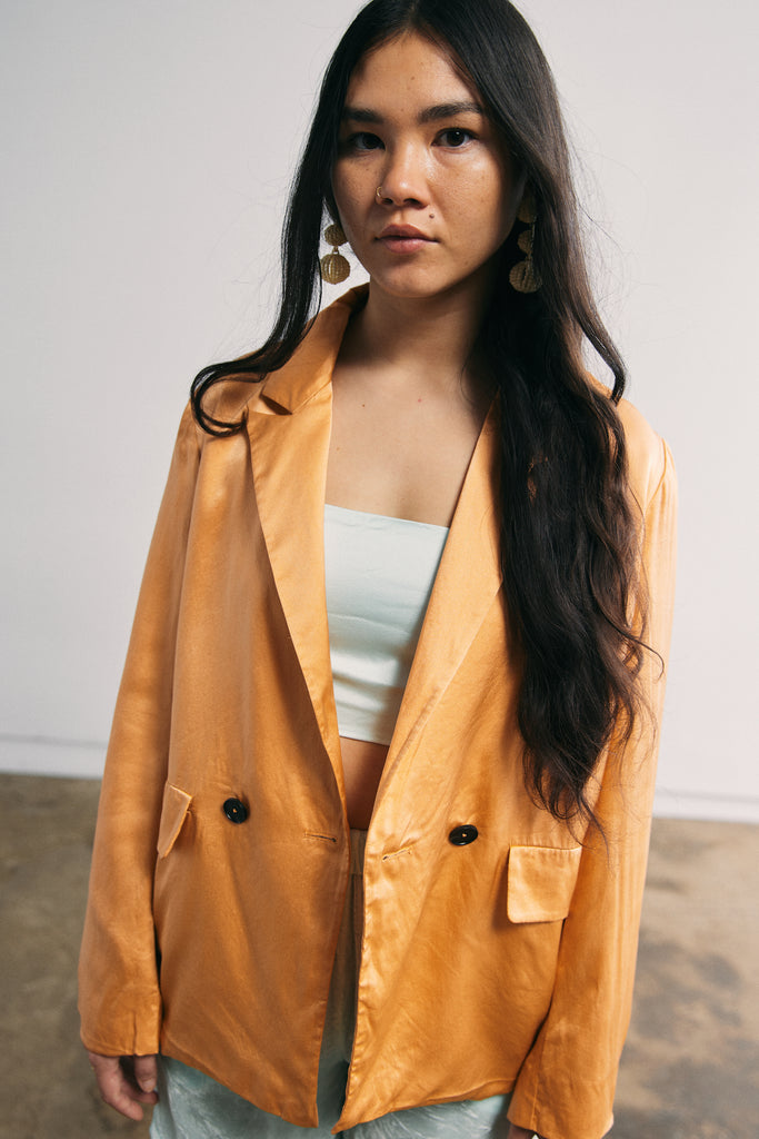 Pair this Silk Blazer with a blouse and trousers for a sophisticated work look, or dress it down with a t-shirt and jeans for a more casual yet chic ensemble. The possibilities are endless with this multi-purpose blazer. Don't miss out on adding this luxurious and versatile piece to your wardrobe. Shop now and experience the comfort and style of our Silk Blazer.