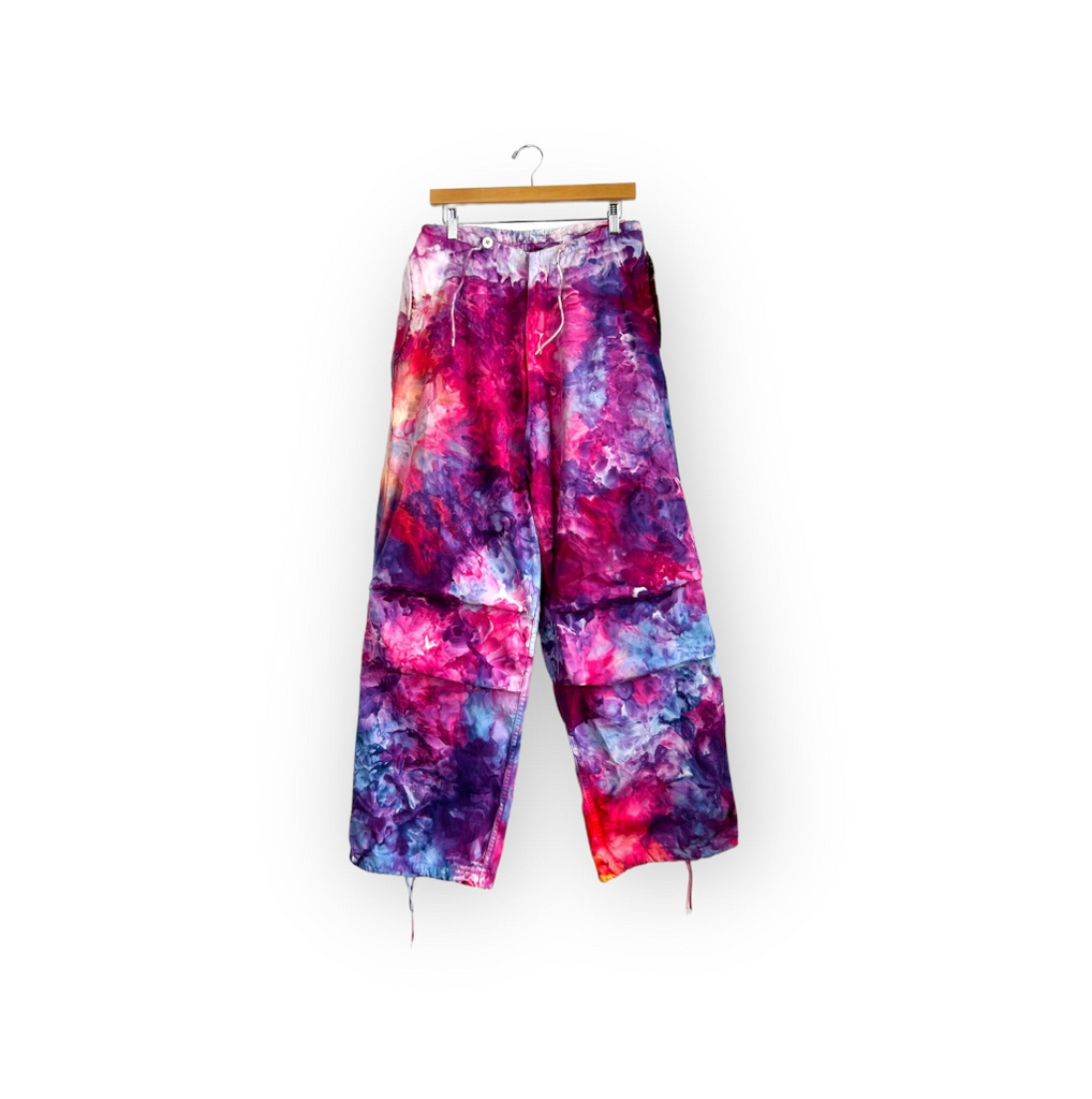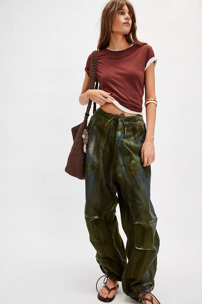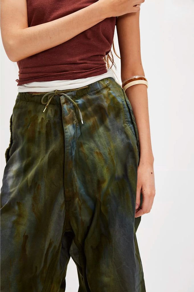 Hand-dyed in small batches, these one-of-a-kind pants are sure to stun with every wear. Effortlessly cool with a retro-inspired touch, pair these pants with your favorite cropped tank for the perfect throwback look.