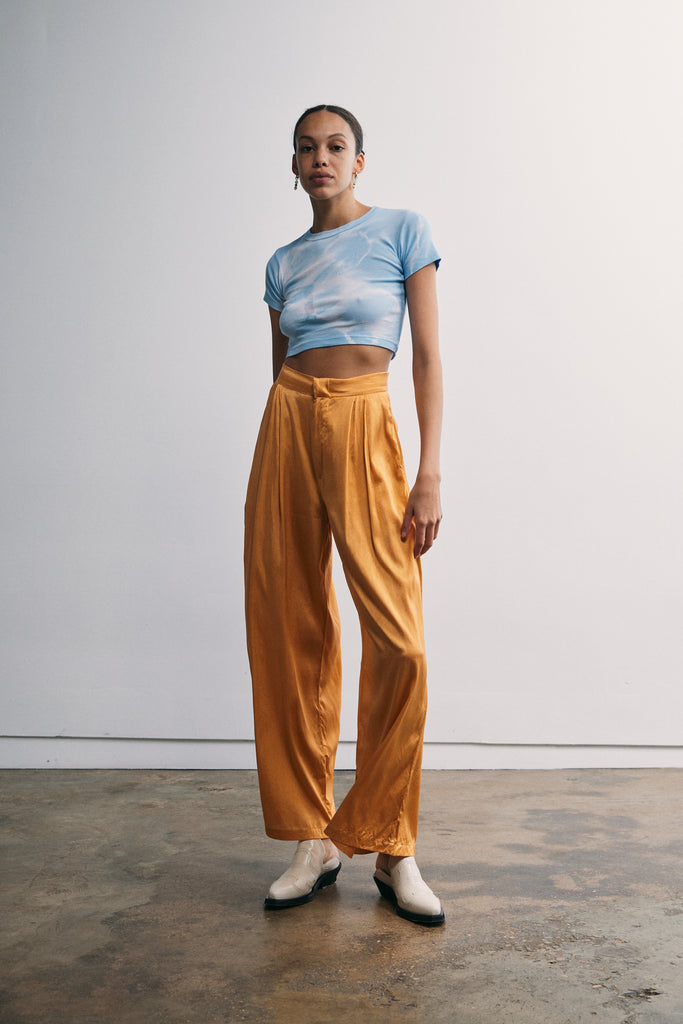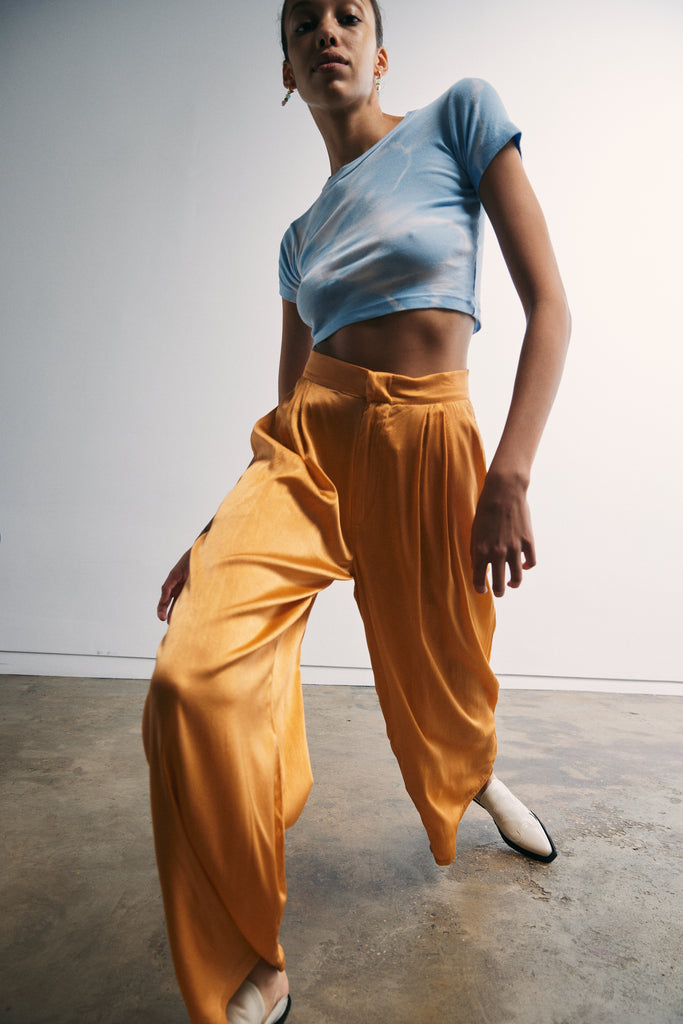 Available in a range of sizes, our Silk Pleat Pants are designed to fit and flatter all body types. The high-quality fabric and expert craftsmanship ensure durability and longevity, making these pants a timeless investment piece.