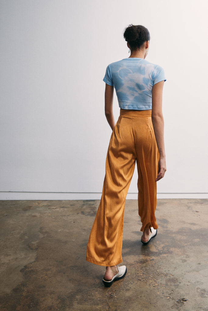 Complete your party look by pairing these pants with a silk blouse or a statement top. Shop now and add a touch of luxury to your wardrobe with our Silk Pleat Pants.