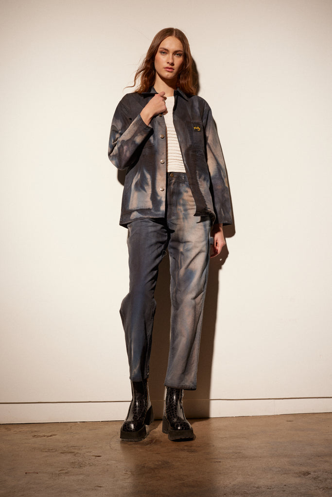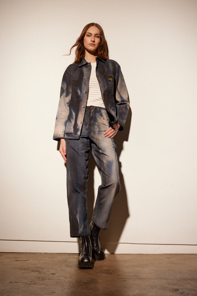 Deadstock vintage Stan Ray work pants hand dyed with low impact dyes. Durable cotton twill in a vintage fit; high waisted, slim throughout the hips and straight in the leg with carpenter pockets. Complete with a zip fly + button waist closure. Those wanting a more slouchy fit should size up. All sizes are actual waist measurements.