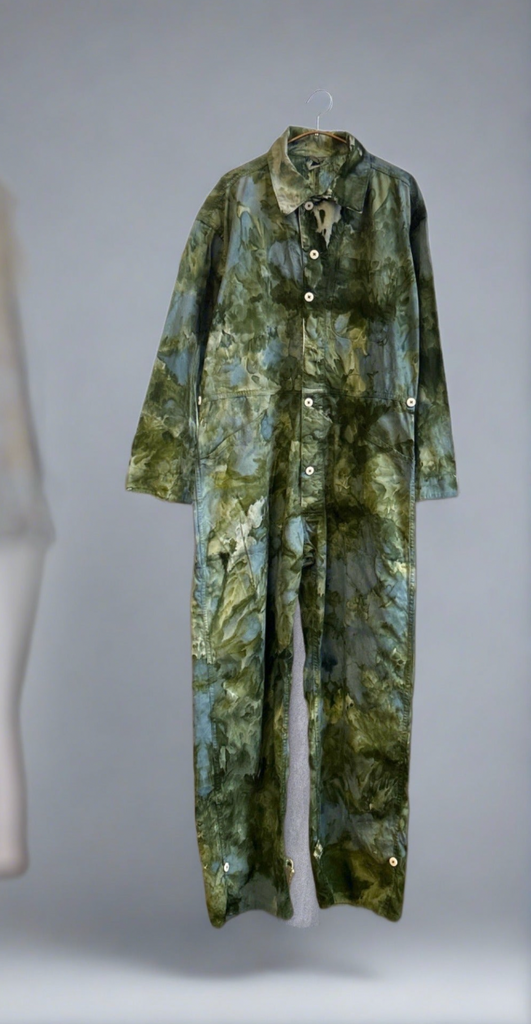 Casual coveralls crafted with an eye-catching twist, this one-piece number delivers on the boilersuit trend. Cut from 100% cotton, our hand-dyed coveralls are effortlessly cool and easy to style. They feature a hidden button closure front with 2 set-in front pockets, 2 patch hip pockets, 2 chest patch pockets, and a ruler pocket. Adjustable waist and leg opening.