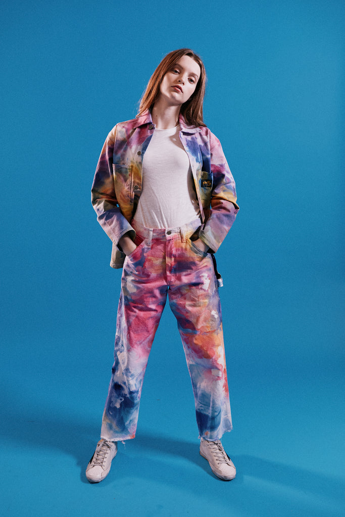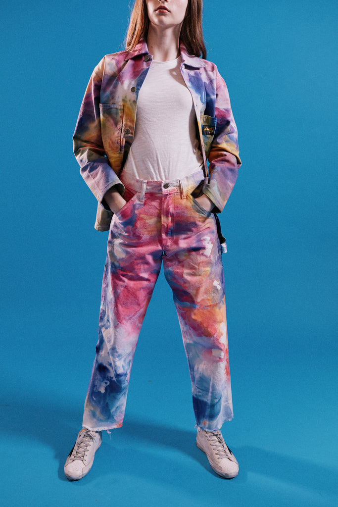 Deadstock vintage Stan Ray work pants hand dyed with low impact dyes. Durable cotton twill in a vintage fit; high waisted, slim throughout the hips and straight in the leg with carpenter pockets. Complete with a zip fly + button waist closure. Those wanting a more slouchy fit should size up. All sizes are actual waist measurements.