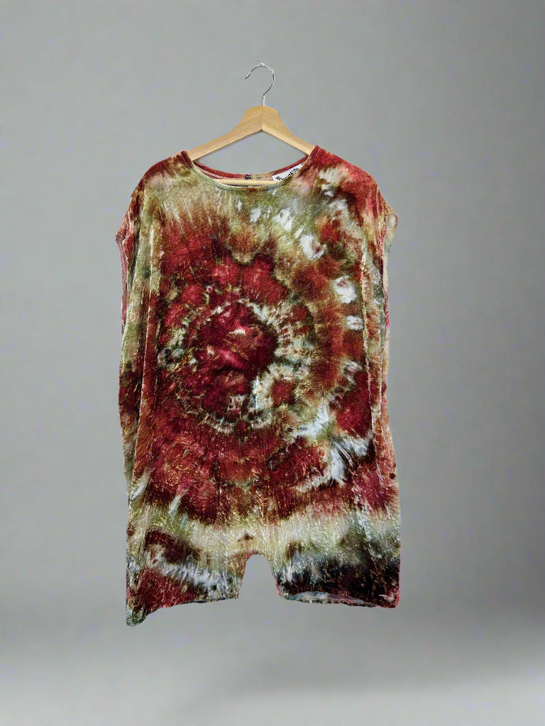 So cool and vintage-inspired, this shapeless jumper is featured in a tie-dyed, silk-blend fabrication with capped sleeves and keyhole detail at back for added shape.