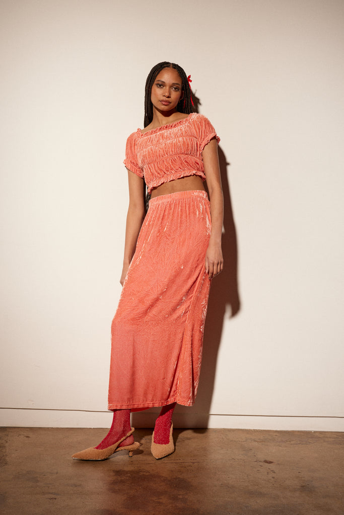 Velvet Ruch Top in Apricot
