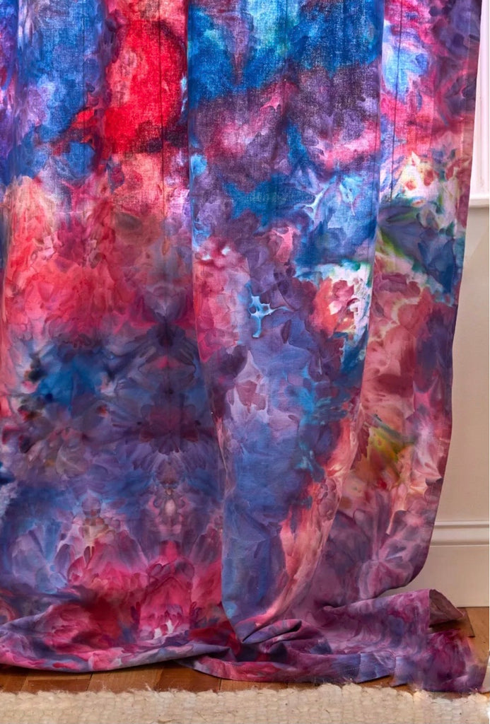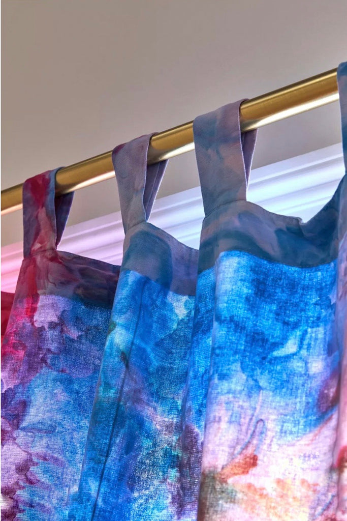Dress your space in a swirl of cosmic color when you hang this window panel. Saturated with a rich mélange of hues, dyed by hand, complete with looped tabs along top edge for easy hanging. Due to the carefully handcrafted nature, the window panel you receive will vary slightly from what’s pictured.